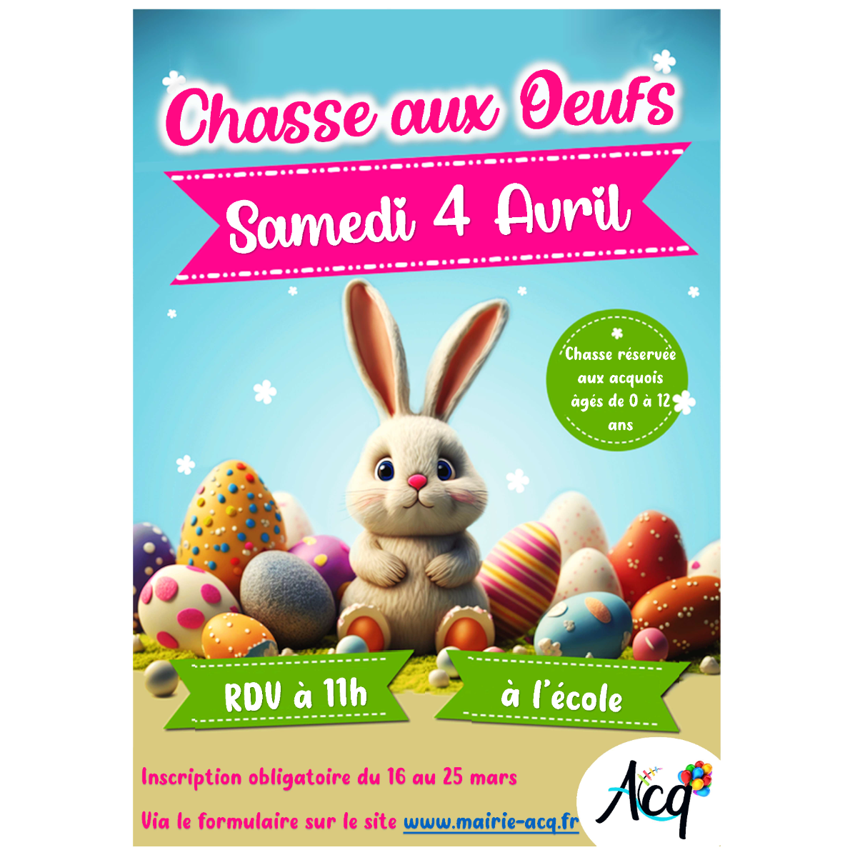 Chasse aux oeufs sur inscription.